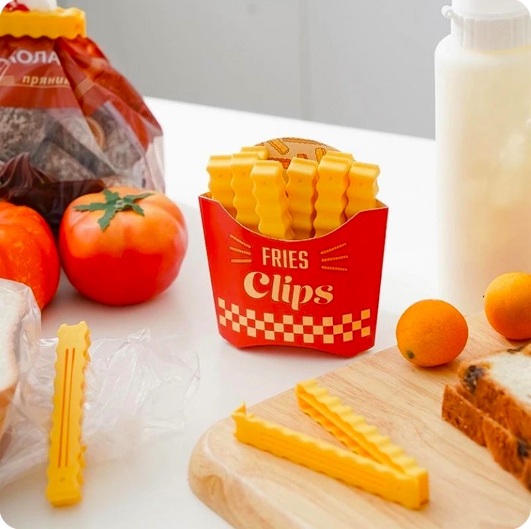 Nosso Kit de Batatinhas Seladoras para embalagens plásticas conta com uma caixinha magnética que suporta perfeitamente os 12 prendedores, e pode ser grudado à superfícies metálicas, como a porta de sua geladeira, por exemplo. Extremamente prático, e sempre à mão em sua cozinha quando você precisar!