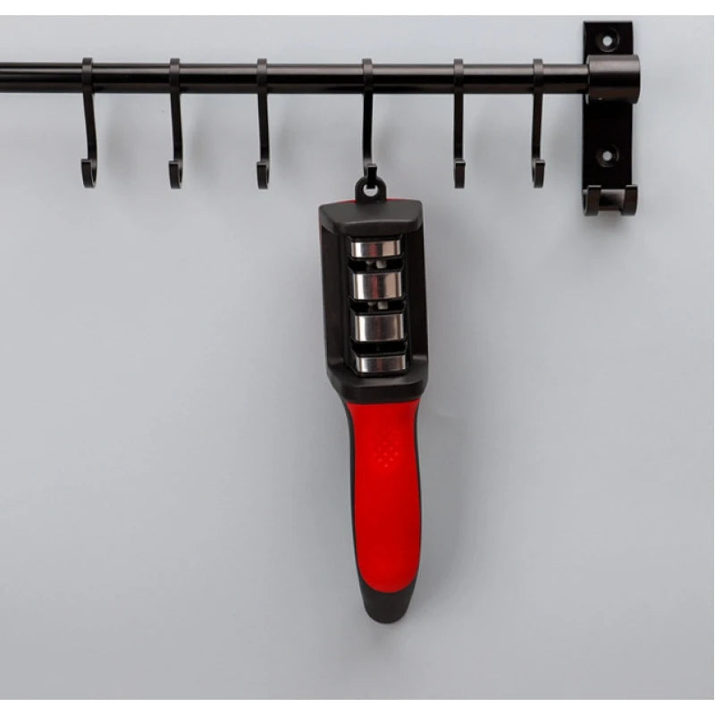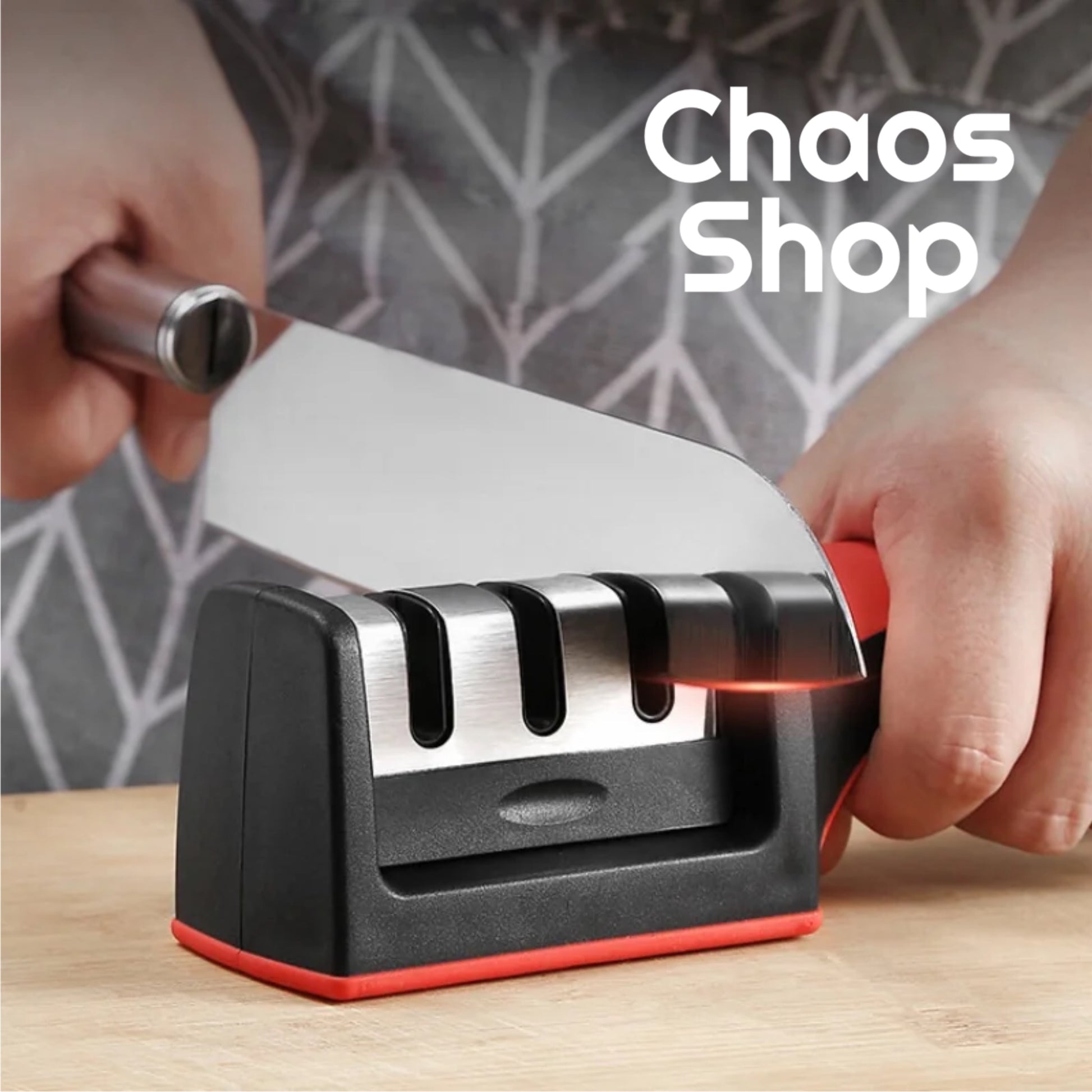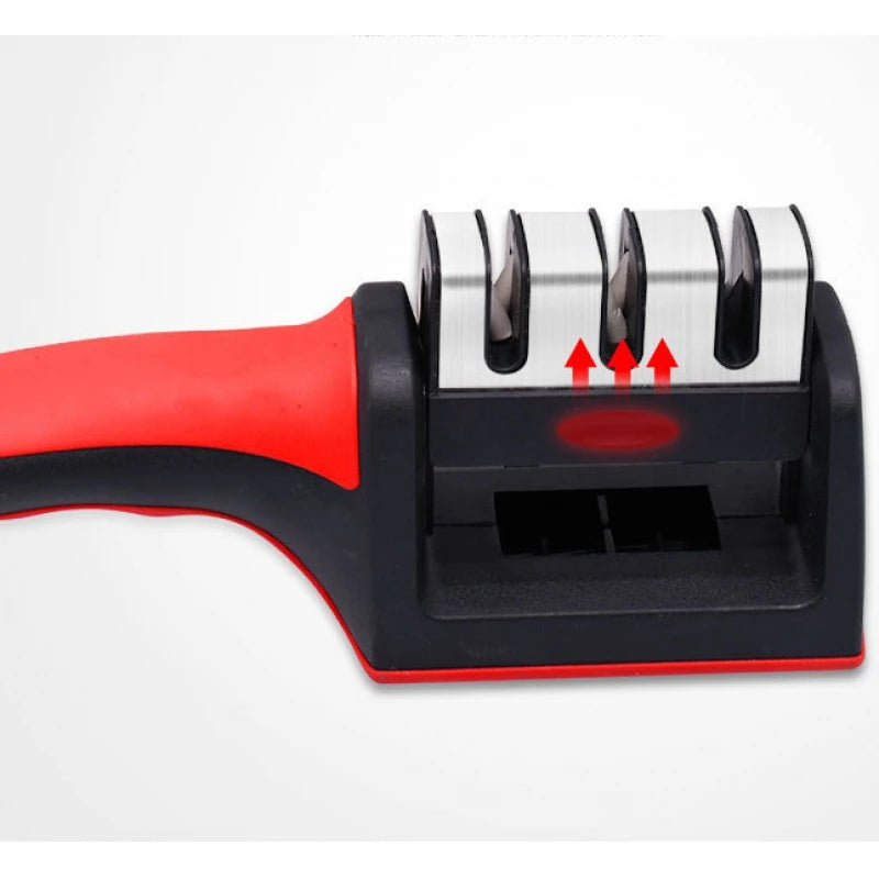 Nosso afiador de facas de 3 estágios conta com base emborrachada para evitar acidentes, cabo anatômico, e uso extremamente simples e facilitado!
